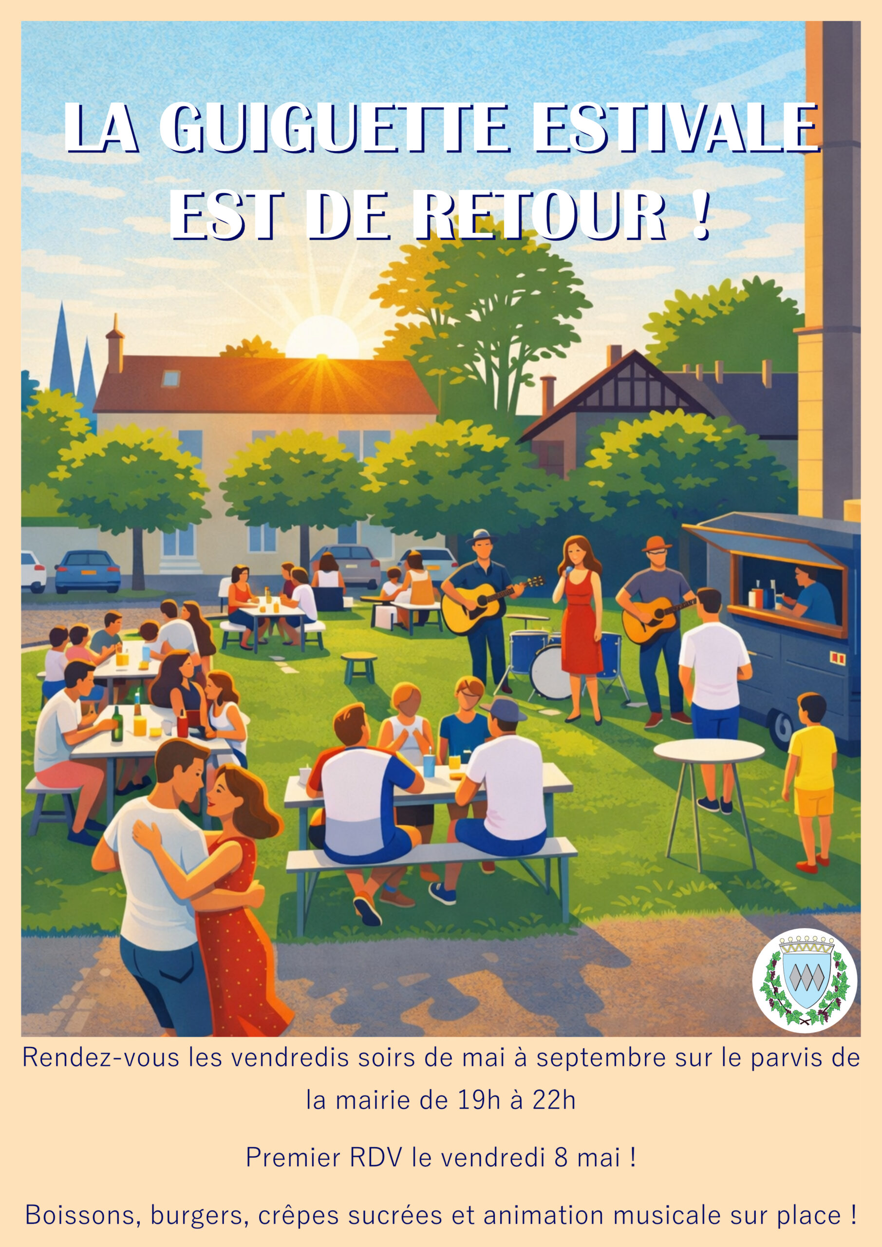Tous les vendredis soirs de 19h à 22h, la place de la mairie s'illumine pour des soirées festives et gourmandes ! Au programme : 🍔 Burgers savoureux, 🥤 Buvette pour se désaltérer, 🥞 Crêpes sucrées pour les gourmands. 🎧 Soirée d'ouverture le 8 mai avec DJ ! Le programme musical des prochains vendredis sera dévoilé […]