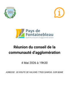 Le conseil communautaire se tiendra lundi 4 mai 2026 à 19h30 à Samois-sur-Seine.