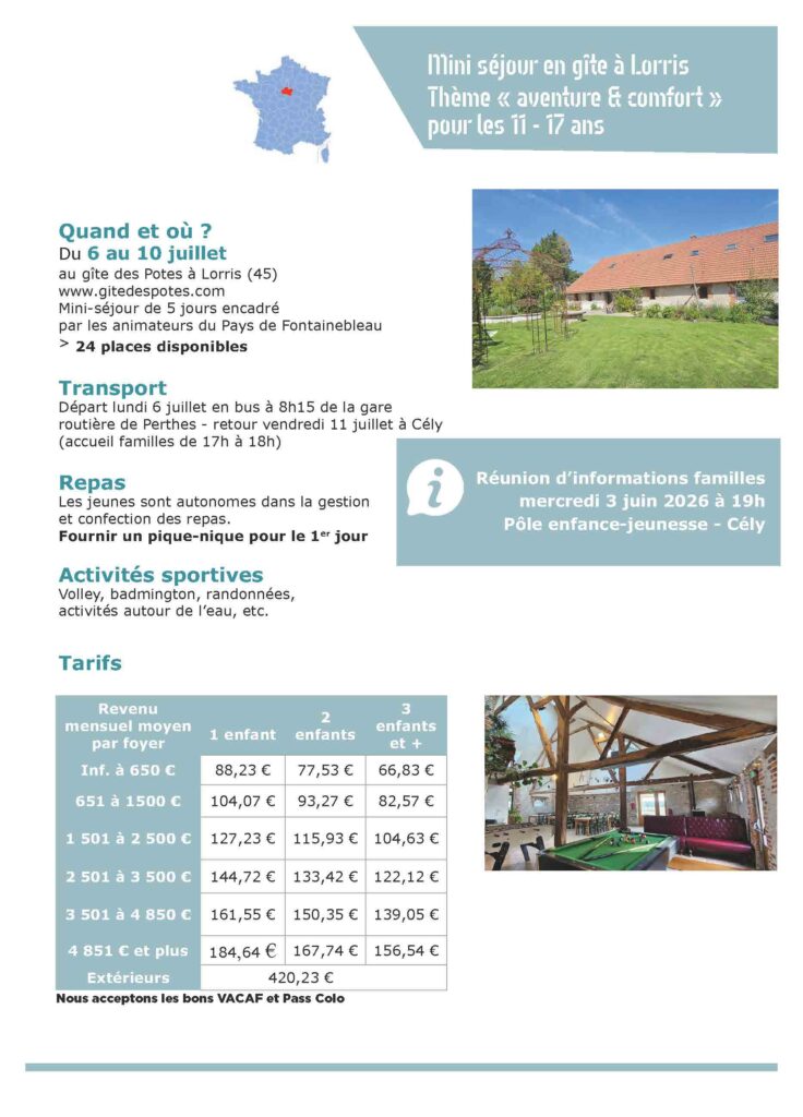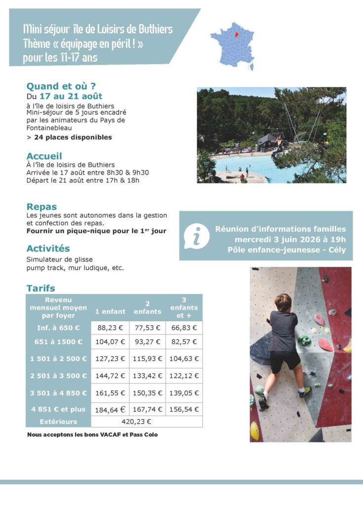 Le Pays de Fontainebleau organise cet été un séjour et deux mini-séjours pour les jeunes.